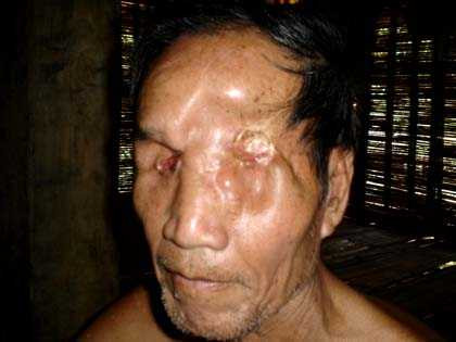 Giờ đây, ngồi trước mặt tôi, trong ánh sáng nhờ nhờ hắt vào căn nhà sàn với những cột gỗ đen bóng, là ông già Lường Văn Khặm tật nguyền, với khuôn mặt rách nát, đôi mắt bị lớp sẹo phủ kín.