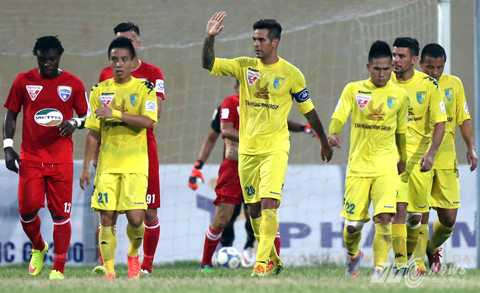 | Hà Nội T&T hạ Thanh Hóa - đội bóng đang xếp thứ 2 V-League 2015 tới 4-1 (Ảnh: Quang Minh) |
