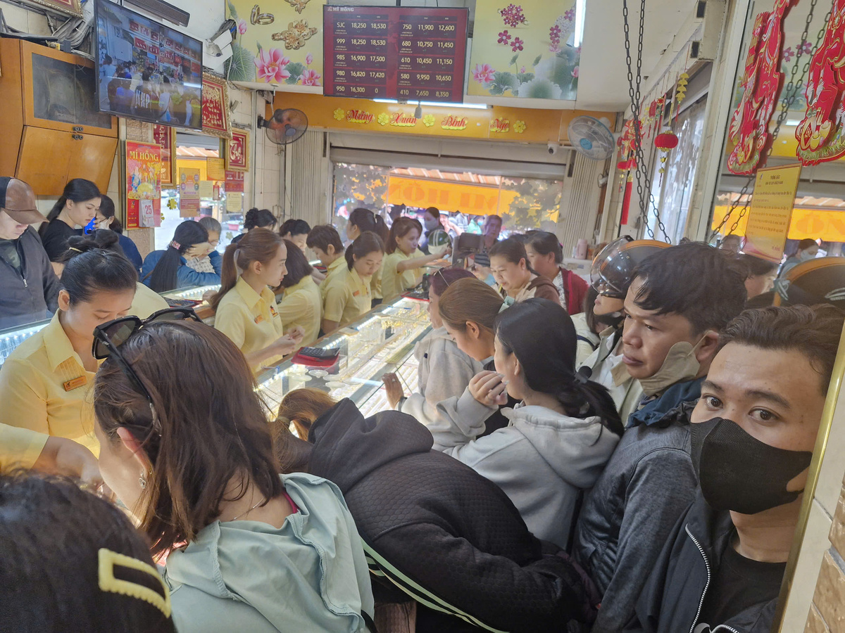 Tại 2 tiệm vàng Mi Hồng ở phường Gia Định, nhân viên cho biết khách tập trung mua đông từ lúc mở cửa nhưng không có cảnh xếp hàng dài tràn ra đường như mọi năm.