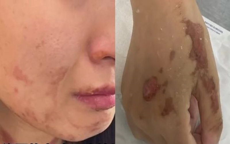 Sự cố khiến nữ khách hàng bị bỏng nhiều vùng trên cơ thể, bao gồm mặt, ngực, tay và bụng. Trong đó, vết bỏng ở bụng là nghiêm trọng nhất. Cô phải nhập viện ngay để chăm sóc đặc biệt.
