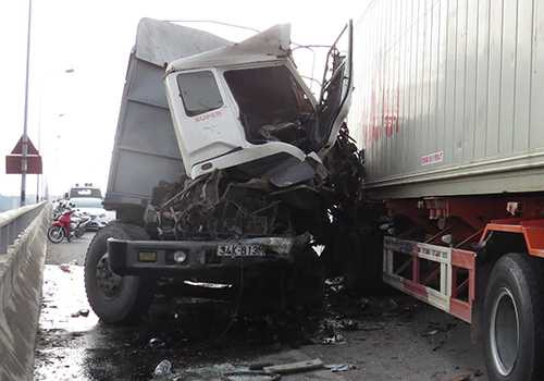 Cú tông mạnh khiến phần đầu chiếc xe tải vỡ nát, tài xế là ông Phạm Văn Thái (Ninh Giang – Hải Dương) tử vong tại chỗ, thi thể không còn nguyên vẹn, bị mắc kẹt trong cabin.