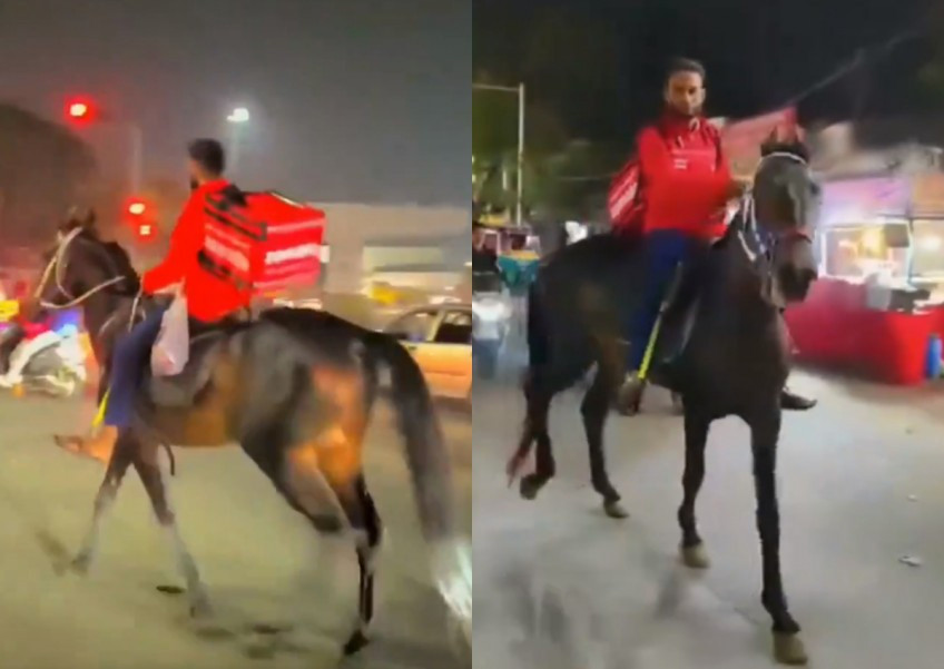 Trong một đoạn video lan truyền trên mạng, người ta nhìn thấy Syed đang cưỡi ngựa len lỏi giữa dòng xe cộ để đi giao hàng.