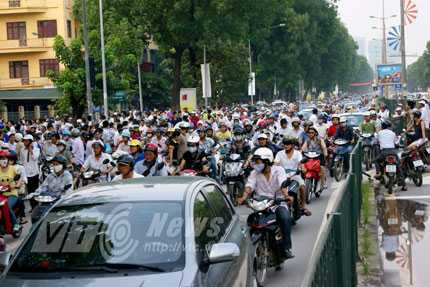 Lãnh đạo TP kỳ vọng phương án đổi giờ sẽ giúp giảm bớt ùn tắc tại Hà Nội. Ảnh chụp đường Nguyễn Trãi, Hà Nội. |