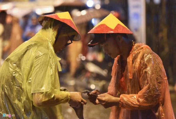 Mặc thời tiết, các cổ động viên yêu bóng đá vẫn dầm mưa cổ vũ cho đội nhà. (Ảnh: Trần Huấn - BVH)