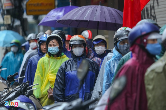 Sáng sớm 9/2 (tức 28 Tết), nhiều người đã không quản ngại trời lạnh, mưa gió để xếp hàng mua giò chả, bánh chưng ở một cửa hàng trên phố Hàng Bông (quận Hoàn Kiếm, Hà Nội). Dòng người chờ tới lượt mua hàng kéo dài cả trăm mét.