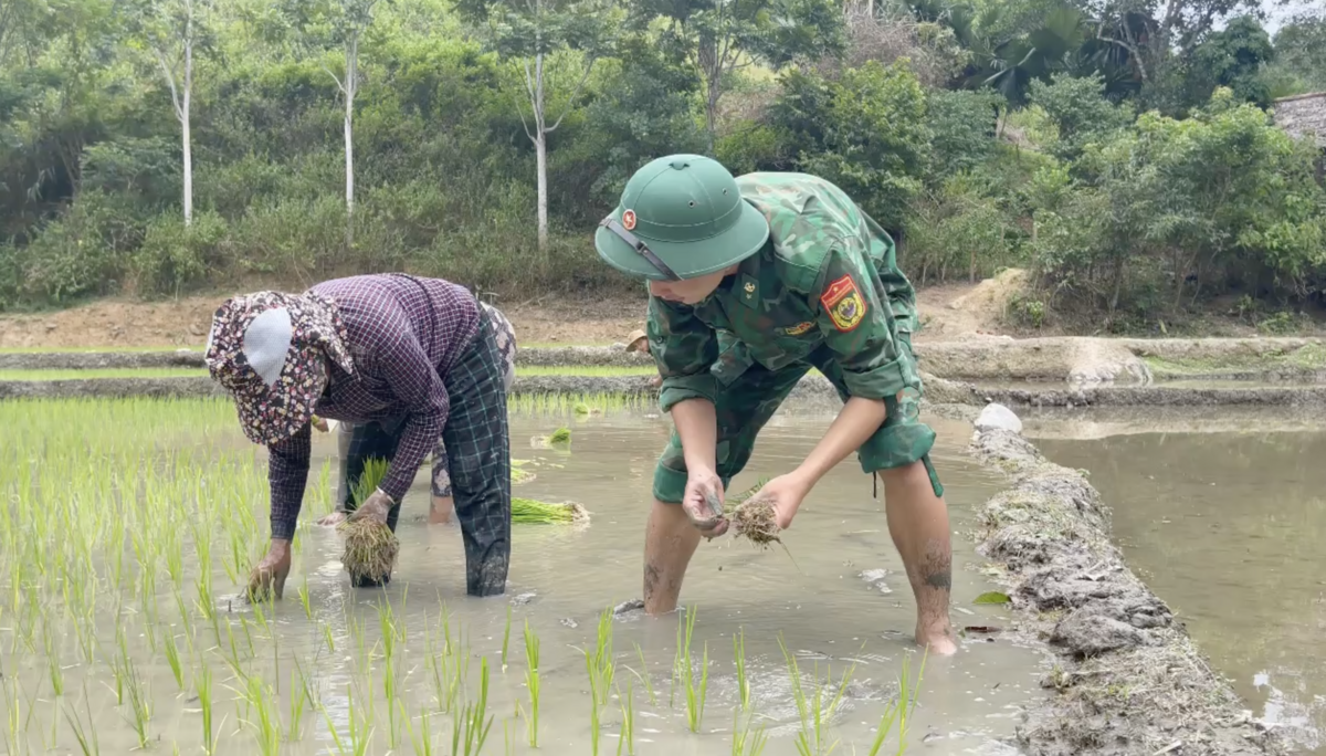 Không quản nắng mưa, mùa Đông hay mùa Hè, mỗi khi đến mùa vụ thì cán bộ đồn Biên phòng Tam Hợp, Nghệ An lại lội bùn giúp dân canh tác.