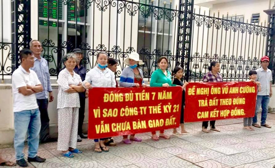 Bức xúc vì bị Công ty Thế kỷ 21 Bình Trưng Tây thu 18,9 tỷ đồng 7 năm nhưng không trả, khách hàng đã căng băng rôn phản đối doanh nghiệp này.