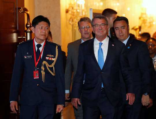 Ngay cả khi không có cuộc gặp Mỹ - Trung nào nhưng tham vọng bành trướng của Bắc Kinh trên biển Đông vẫn phủ bóng hoạt động của Bộ trưởng Quốc phòng Mỹ Ashton Carter tại SLD. Gặp người đồng cấp Singapore Ng Eng Hen, ông Carter không quên đề cập vấn đề nóng bỏng ở châu Á - Thái Bình Dương nhiều năm qua: Câu chuyện tuyên bố chủ quyền trên biển của nhiều quốc gia.