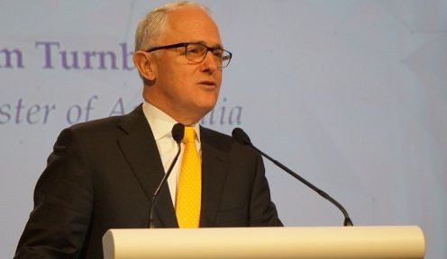 Thủ tướng Australia Malcom Turnbull phát biểu mở màn đối thoại Shangri-La tại Singapore. (Ảnh: VNE)