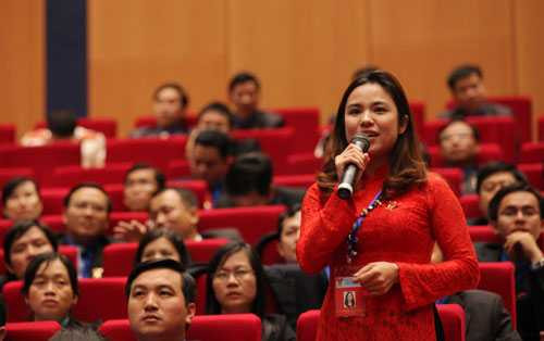 ĐB Nguyễn Thị Ngà (Đoàn Hà Nội): "Tôi rất xúc động khi lần đầu tiên ĐH Đoàn toàn quốc có sự tham gia và đối thoại của người đứng đầu Chính phủ và thành viên Chính phủ. Đến dự ĐH, mong Thủ tướng chia sẻ ý kiến đóng góp cùng ĐH".
