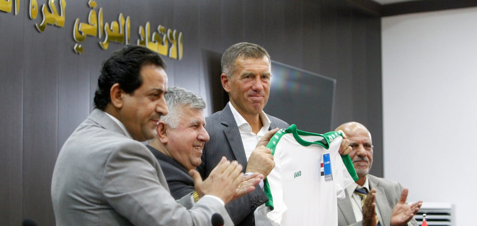 HLV Srecko Katanec (thứ 2 từ phải sang) trong ngày nhậm chức HLV trưởng đội tuyển Iraq.
