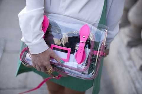 Xu hướng xuyên thấu quả là có một sức mạnh đáng nể khi công phá mọi "mặt trận" trong lãnh địa thời trang. Không chỉ làm mưa làm gió với váy áo, kiểu mốt này còn đặc biệt được yêu thích trong thiết kế túi xách. Túi xách nhựa trong xinh xắn vừa nhẹ vừa có cảm giác mềm mại rất hợp với những cô nàng yểu điệu thục nữ.