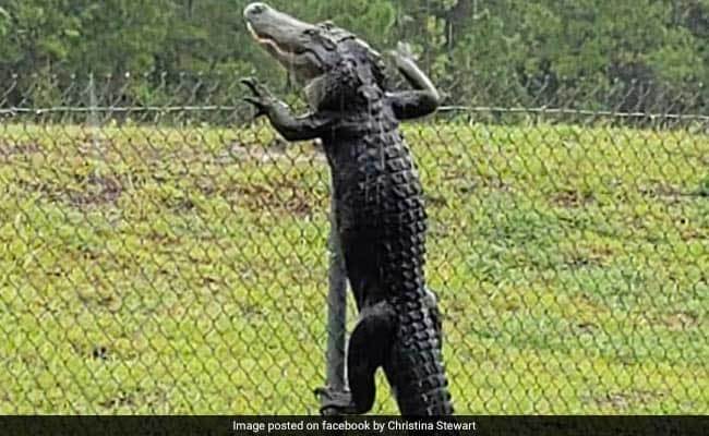 Trong đoạn phim được Christina Stewart ghi lại hôm 17/8, con cá sấu chật vật leo lên hàng rào cao khoảng 2 m. Sau khi trèo qua thành công, nó lầm lũi bò vào bên trong căn cứ.