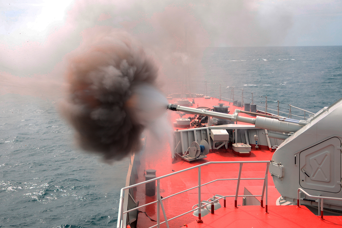 Pháo AK 176 khai hỏa bắn mục tiêu đối hải.