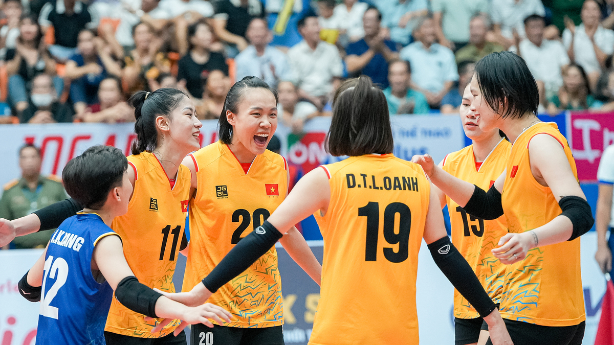 Các học trò của HLV Nguyễn Tuấn Kiệt nhập cuộc đầy tự tin dưới sự cổ vũ của khán giả nhà. Ngoài Trần Thị Thanh Thúy, Hoàng Thị Kiều Trinh và Trần Tú Linh cũng thi đấu đầy ấn tượng và liên tục ghi điểm. Đội tuyển nữ Việt Nam rượt đuổi kịch tính với đối thủ và giành chiến thắng 25-22 trong ván đầu tiên.