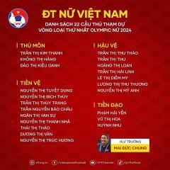 Theo kết quả trận giao hữu cũng như quá trinh tập luyện trong suốt gần 1 tháng qua, huấn luyện viên Mai Đức Chung cùng ban huấn luyện đội tuyển nữ Việt Nam đã chốt danh sách rút gọn cho vòng loại Olympic 2024.