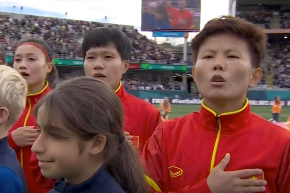 Đội tuyển nữ Việt Nam lần đầu hát Quốc ca ở World Cup.