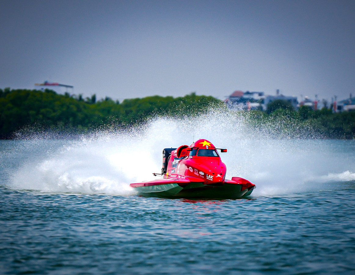 Thuyền đua của đội Việt Nam với những màn rượt đuổi đối thủ kịch tính và những cú bẻ cua điêu luyện trên mặt sóng.