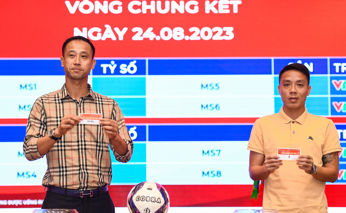 2 tuyển thủ Ngọc Duy và Như Thành bốc thăm lịch thi đấu cho VCK bóng đá 7 người vô địch quốc gia.