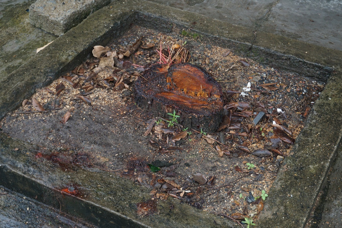 Cây sưa trước số nhà 56 Nguyễn Khắc Nhu bị đốn hạ. (Ảnh: Đ.N)