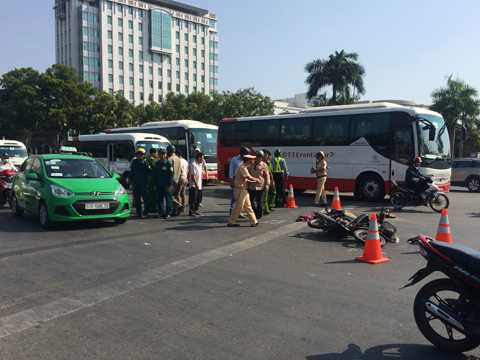 Khi đến giao lộ Nguyễn Lương Bằng – Nguyễn Văn Linh, chiếc xe máy xảy ra va chạm với một container chạy cùng chiều. Cú va chạm khiến bà Thái ngã ra đường, bị bánh xe container cán qua, tử vong tại chỗ. Bé Gia Khang may mắn văng ra xa nên thoát chết.