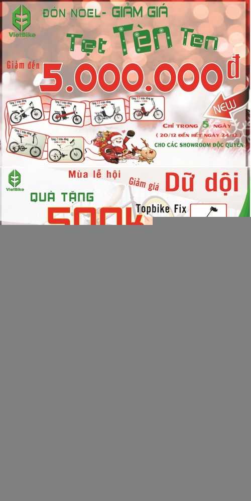 Tưng bừng những ngày Noel cuối năm – mùa mua sắm chuẩn bị chào đón năm mới, quý khách hàng sẽ được tặng ngay tiền mặt lên tới 5 triệu đồng khi mua xe đạp điện tại hệ thống showroom độc quyền Vietbike – một khoản tiền nhỏ sở hữu xe đạp điện chính hãng