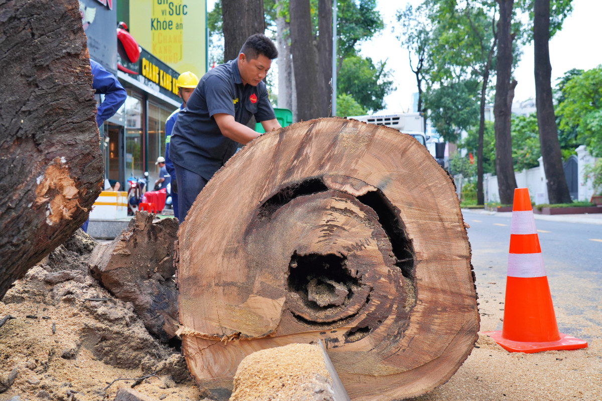 Cây sao đen trên đường Lê Quý Đôn (Quận 3), có đường kính hơn 1m, bên trong mục ruỗng.