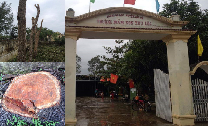Theo đó, ngày 16/10, lợi dụng việc tỉa cành, phát quang để phòng tránh cơn bão số 7, chị Trần Thị Thắm, hội phó Hội phụ huynh cùng với cô Phạm Thị Nga và cô Lê Thị Hiền giáo viên của Trường mầm non Thụ Lộc đã thuê người đến chặt phá nhiều cây xanh trong khuôn viên trường.