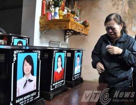 Trong khi đó, bà Quảng Thị Phong (mẹ ruột chị Minh) khóc ngất khi nhìn thấy di hài con và các cháu ở sân bay Nội Bài. Về đến nhà tang lễ, tay bà run rẩy chạm vào di ảnh con gái và cháu, khóc không thành tiếng.