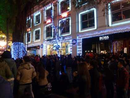 Thời tiết giá lạnh trong đêm 31/12 khiến nhiều người ngại ra đường đón Tết dương lịch. Không khí Tết chỉ thấy ở một số ít khu phố trung tâm thành phố.