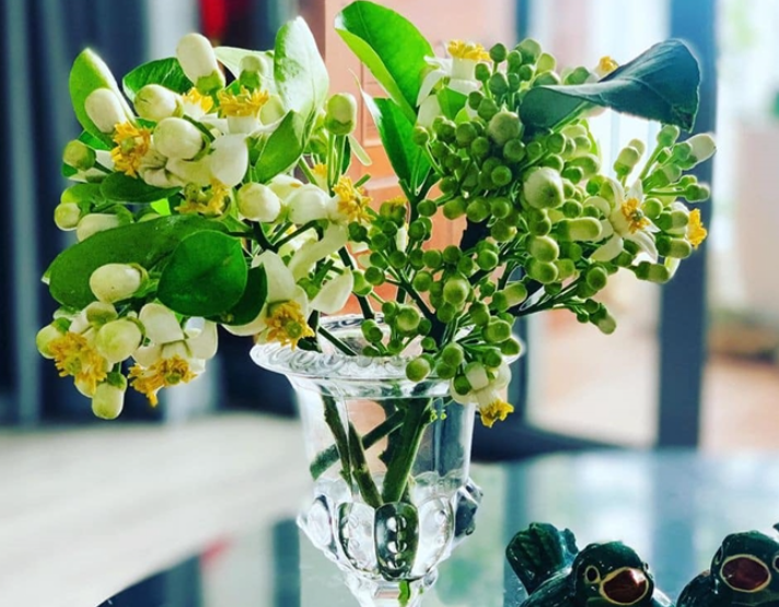 Hoa bưởi cắm lọ đẹp giản dị. (Ảnh: FB Nguyễn Bích Thảo)
