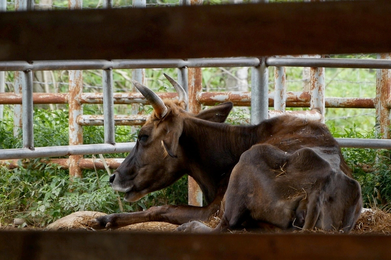 Hậu duệ của bò tót rừng trước đây được chăm sóc rất tốt.