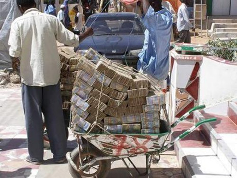 | Người dân Zimbabwe chở tiền bằng xe cút kít đi chợ. Ảnh: Palpa India |