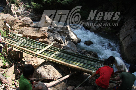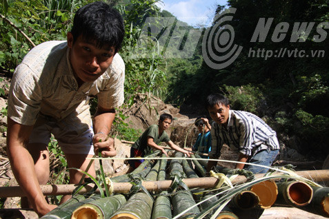 Mấy thanh niên bản Tưn đẽo gọt những cây bương, rồi dùng lạt buộc lại thành một chiếc bè. Chiếc bè ấy đủ sức tải vài người và chịu được va đập mạnh.