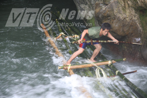 | Cảnh vượt suối ngầm trong hang bằng bè |