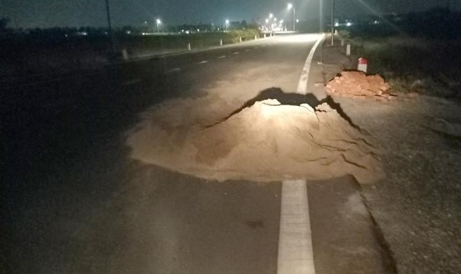 Tối 27/11, nhiều người đi trên trục tỉnh lộ 427B đoạn qua xã Tam Hưng (Thanh Oai, Hà Nội) hướng về Thường Tín (Hà Nội) hốt hoảng khi đang lái xe thì phát hiện đống cát nằm chình ình trên đường.