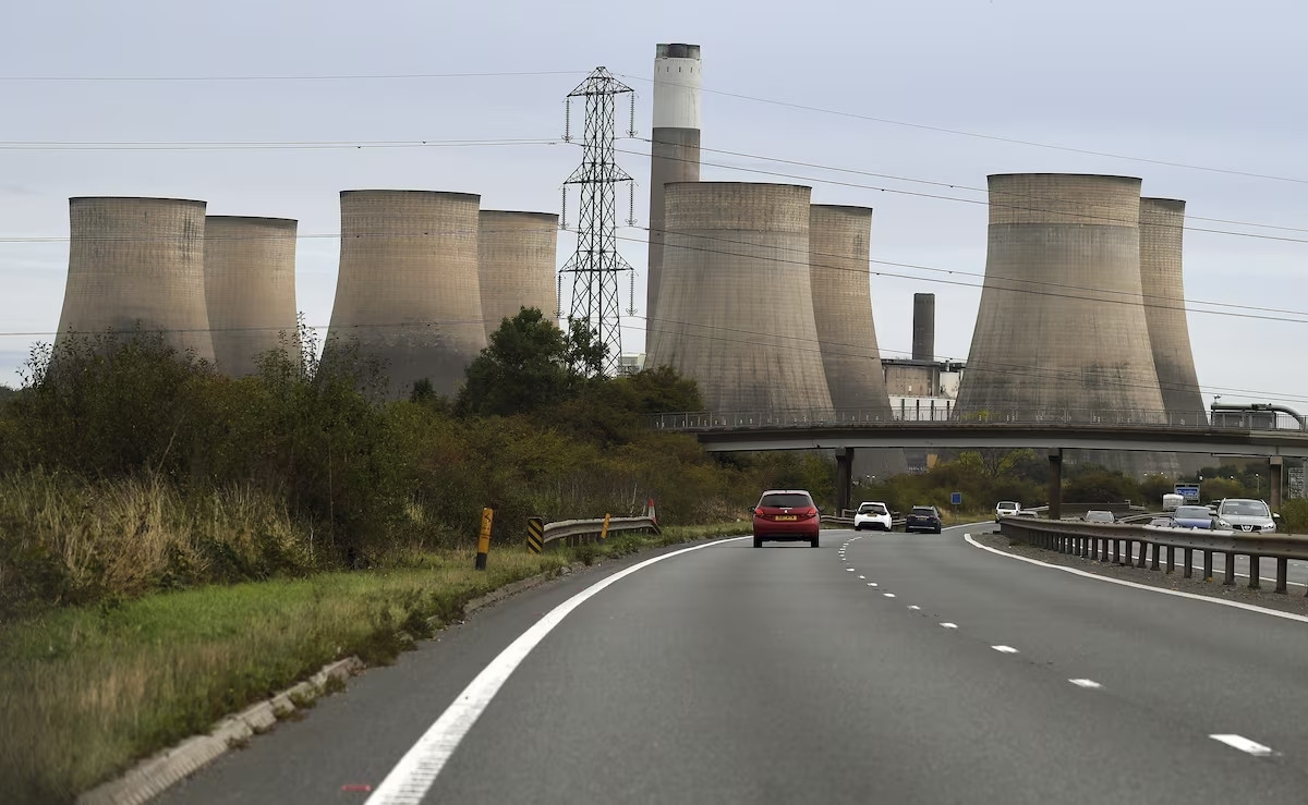 Các phương tiện đi qua nhà máy điện Ratcliffe-on-Soar ở Nottingham, Anh, vào ngày 29/9. (Ảnh: theglobeandmail)