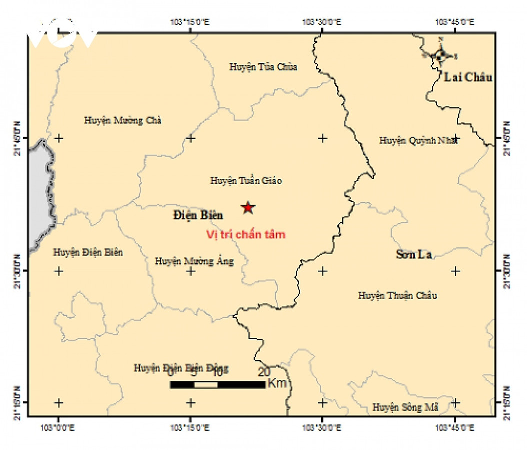 Dựa theo vị trí này, tâm chấn của trận động đất được xác định xảy ra tại khu vực huyện Tuần Giáo, tỉnh Điện Biên với cấp độ rủi ro thiên tai cấp 0.