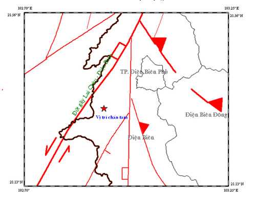 Ông Nguyễn Thái Sơn - Trạm trưởng Trạm quan sát địa chấn thành phố Điện Biên Phủ cho biết, tọa độ tâm chấn trận động đất cách thành phố Điện Biên Phủ khoảng 15km về phía Tây Tây Nam. Tại vị trí này, ước tính tâm chấn sẽ nằm ở khu vực biên giới thuộc các xã Thanh Chăn, Thanh Hưng (Điện Biên).
