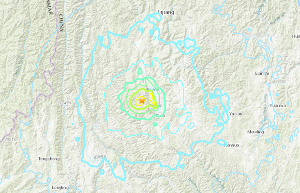 Bản đồ địa chấn tại Vân Nam, Trung Quốc (Nguồn: USGS)