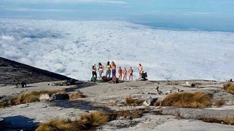 | Những du khách thoát y gần đỉnh núi Kinabalu |