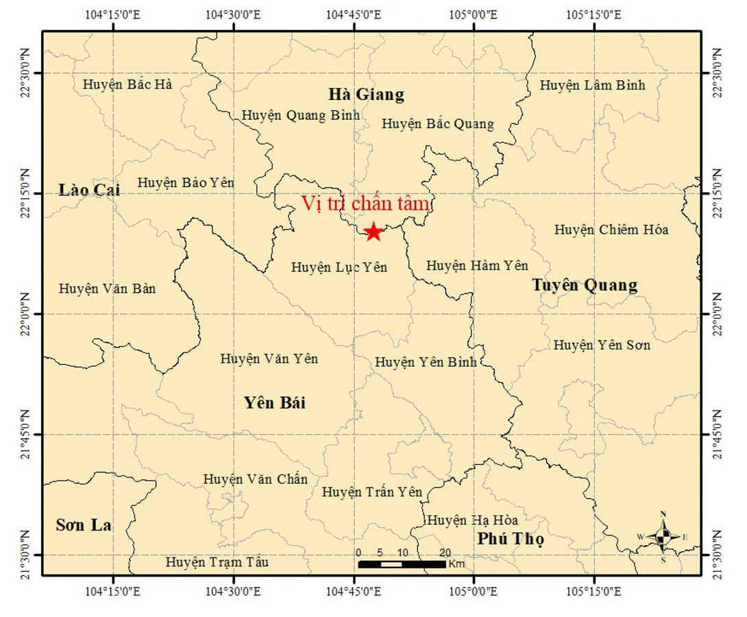 Theo đó, vào lúc 15 giờ 09 phút 03 giây cùng ngày, một trận động đất có độ lớn 3.5, độ sâu chấn tiêu khoảng 10km xảy ra tại huyện Lục Yên, tỉnh Yên Bái.