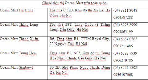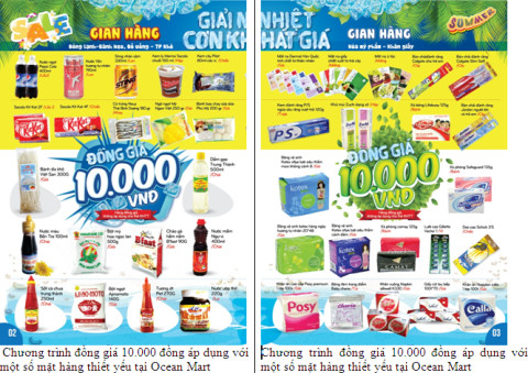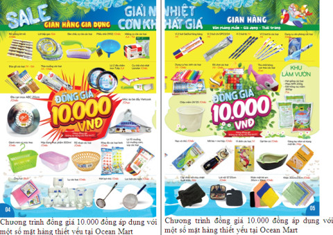 (VTC News) - Lần đầu tiên và duy nhất tại hệ thống siêu thị Ocean Mart trên toàn quốc triển khai chương trình mua sắm đặc biệt gửi tới khách hàng hàng trăm sản phẩm hàng gia dụng, thực phẩm thiết yếu được bán với một giá duy nhất 10.000 đồng. Chương trình áp dụng được triển khai từ ngày 11/7 đến 29/7/2014 với nhiều sản phẩm như hàng thực phẩm (như tương ớt, dấm, nước mắm, cá trứng đông lạnh…), hàng nhu yếu phẩm (như bàn chải đánh răng, xà bông chất lượng cao…), văn phòng phẩm và nhiều đồ dùng dụng cụ thiết yếu trong nhà bếp.