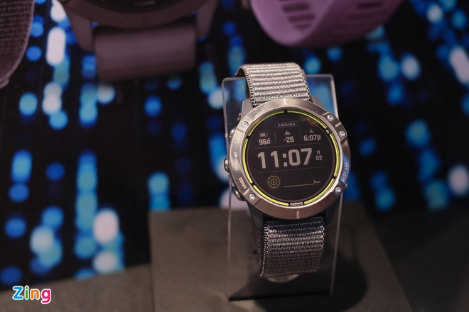 Garmin Việt Nam vừa giới thiệu mẫu đồng hồ luyện tập Enduro cùng với cửa hàng thương hiệu tại Hà Nội. Đây là sản phẩm mới được hãng ra mắt vào tháng 2, tập trung vào thời lượng pin. Theo thông số của Garmin, mẫu Enduro có thời gian sử dụng pin tới 80 giờ ở chế độ GPS hoặc 65 ngày ở chế độ đồng hồ thông minh, khi kết hợp với sạc năng lượng mặt trời.