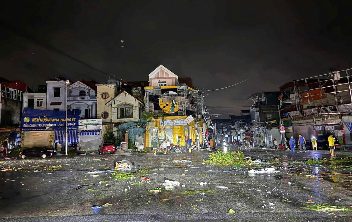 Khu phố tan hoang sau trận dông lốc.