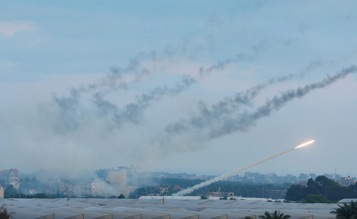 Tên lửa phóng từ Gaza vào Israel ngày 7/10/2023. (Ảnh: Reuters)