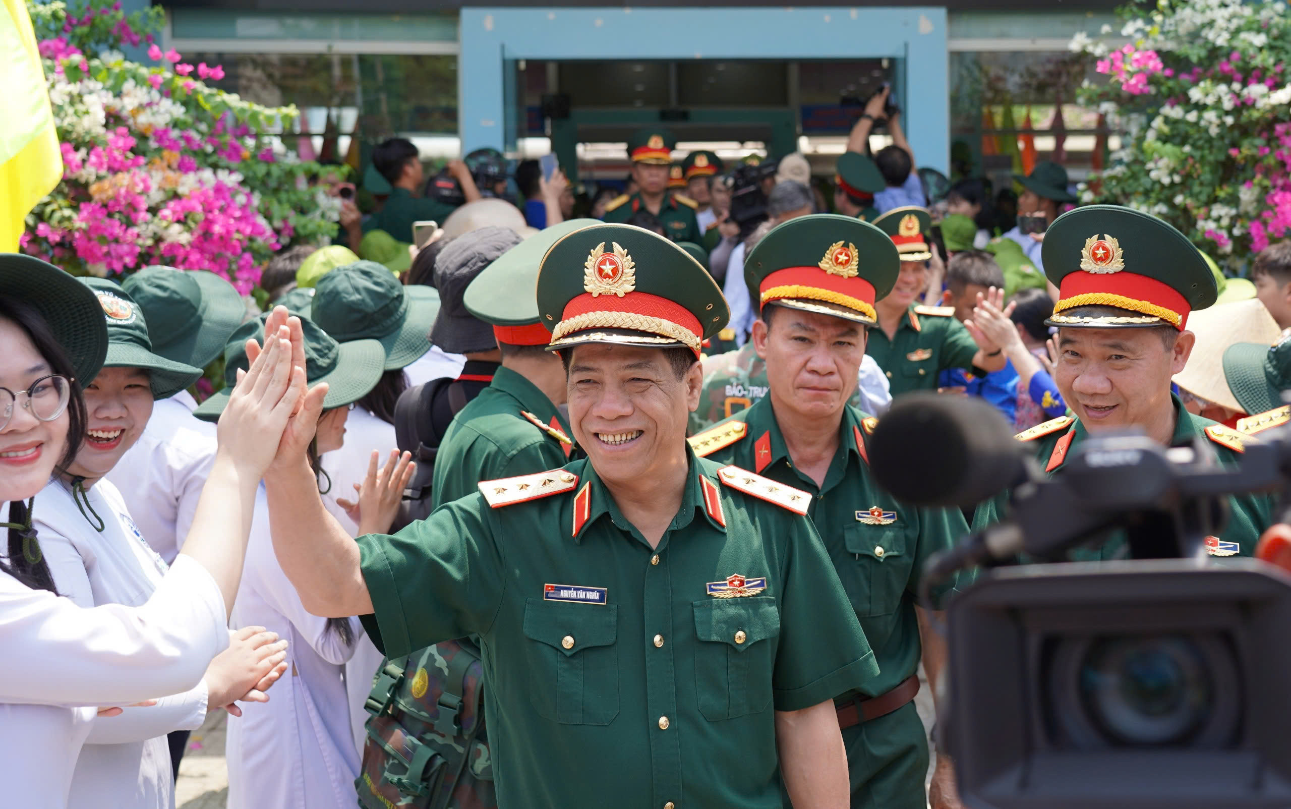 Người dân đội nắng, có mặt từ sớm để đón các cán bộ, chiến sĩ từ Bắc vào. Thượng tướng Nguyễn Văn Nghĩa, Phó Tổng tham mưu trưởng Quân đội Nhân dân Việt Nam và đoàn công tác nhận được sự đón tiếp nồng nhiệt từ người dân địa phương.