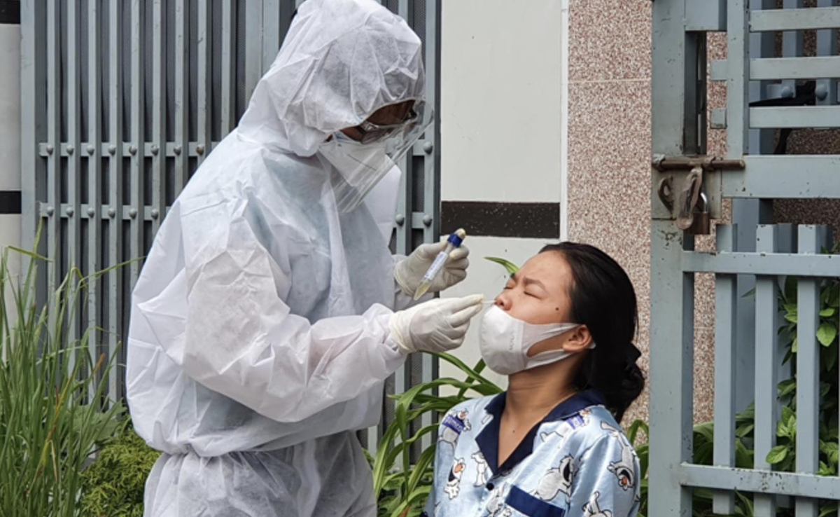Nhân viên y tế tỉnh Đồng Nai lấy mẫu xét nghiệm COVID-19 cho người dân liên quan ổ dịch Công ty Changshin.