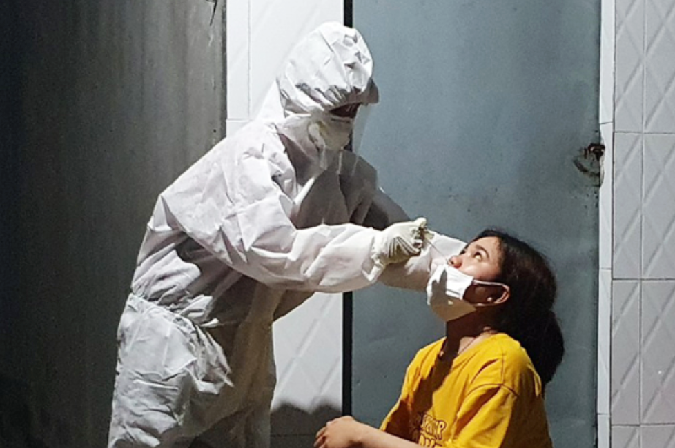 Nhân viên y tế tỉnh Đồng Nai lấy mẫu xét nghiệm COVID-19 cho người lao động Công ty Changshin huyện Vĩnh Cửu.