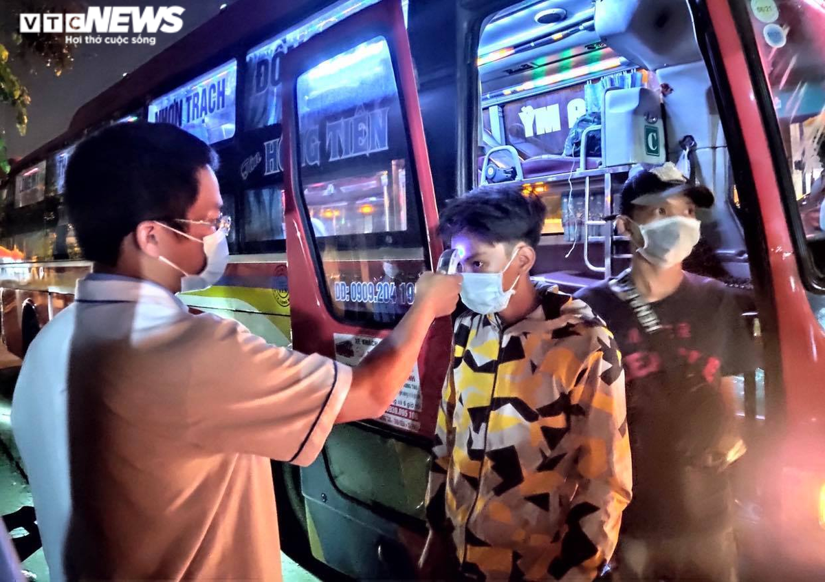 Khoảng 0h30, cán bộ trực tại chốt kiểm soát dừng hàng loạt xe khách, xe tải, xe máy từ TP.HCM vào Đồng Nai để đo thân nhiệt, lấy thông tin khai báo y tế, đồng thời hướng dẫn các tài xế thực hiện đầy đủ biện pháp phòng chống COVID-19.